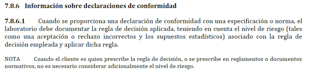Al mismo tiempo, la nueva versión de la norma ISO IEC 17025:2017 indica que no existe una única regla de decisión de conformidad que pueda cubrir todas las aplicaciones posibles.