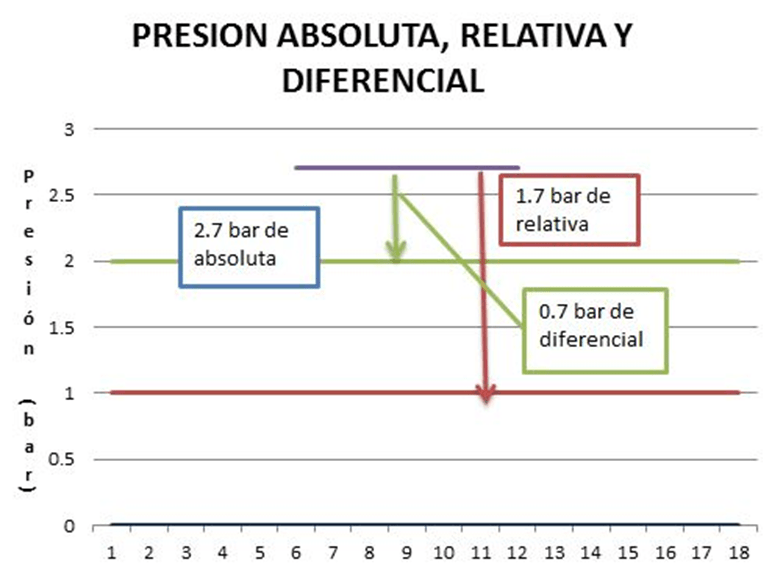 Existen 3 tipos de presión, presión absoluta, presión relativa y presión diferencial:
