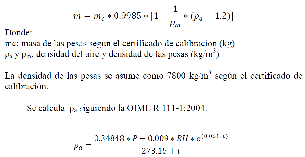 Para balanzas de alta presión hidráulica se usa la formula: